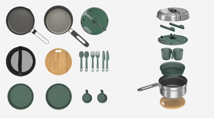 I bring a compact camping casserole (light and small), bought at Decathlon (Link to the casserole– I use this one, I bought it at Decathlon in France).